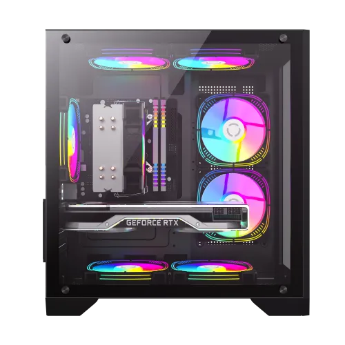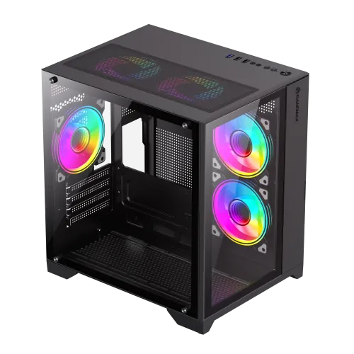 Boîtier PC GameMax Infinity Mini – compatible avec 7 ventilateurs ARGB, boîtier gaming compact avec 2 panneaux en verre trempé